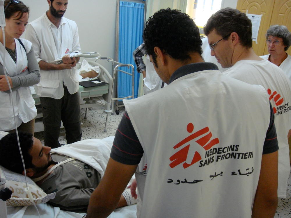 MSF lavora con le équipe mediche libiche presso le linee del fronte. Dal porto di Misurata, trasferisce feriti e materiale sanitario da/verso Tunisi.
