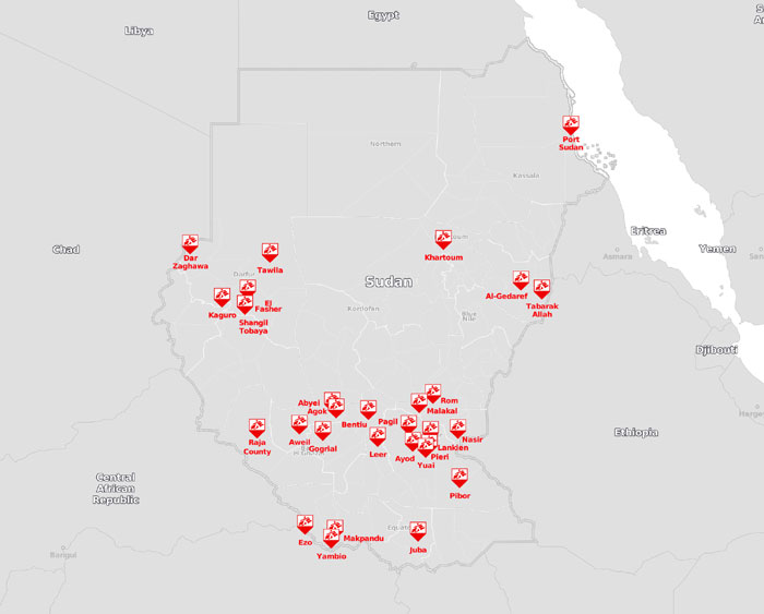 Mappa delle attività di MSF in Sudan